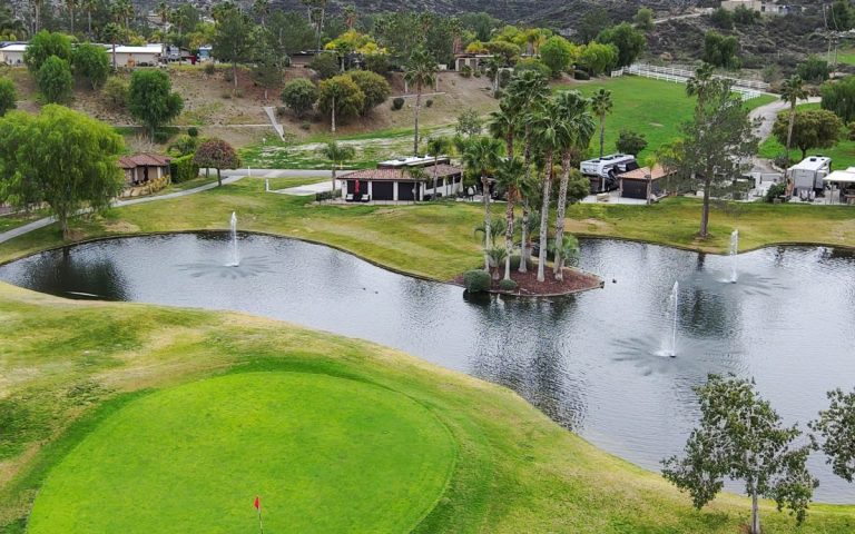 Affectionately known as “The Ranch,” this 440-acre, gated community was designed with large sites to accommodate Class A Motor Coaches, Fifth-Wheels, and “Super C” Motorcoaches. Over 590 spacious sites, averaging 40 x 80 feet, provide plenty of room for multiple slide-outs. “The Ranch” has two clubhouses, an exercise room, tennis/pickle-ball courts, and 27 lakes, including a catch-and-release fishing lake. Best of all is a beautiful 14-hole, challenging Executive (Par 3) Golf course meandering throughout the Resort.