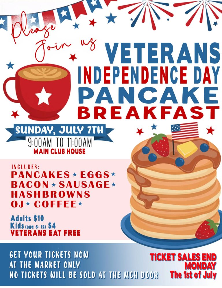 Join us on Sunday, July 7th at 9am for our Pancake Breakfast. VETERANS EAT FREE!