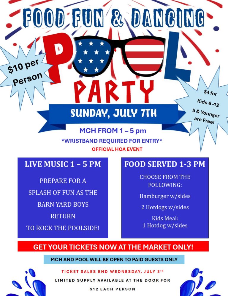 Join us Sunday, July 7th at 1 pm for our Pool Party!