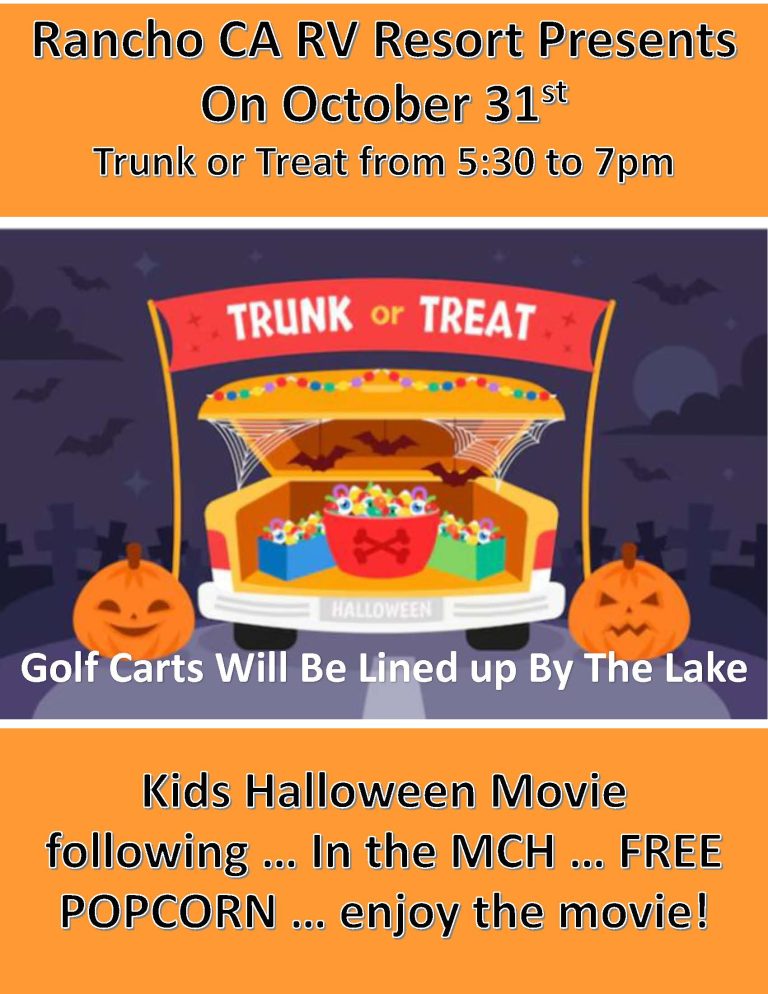 Trunk or Treat will be followed by a movie in the Main Clubhouse.